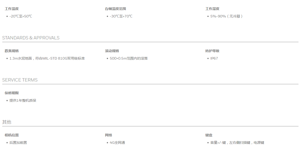 工業(yè)級的耐用性,可以經(jīng)受嚴(yán)酷的環(huán)境考驗(yàn),能夠承受1.3米跌落及IP67防塵防水等級